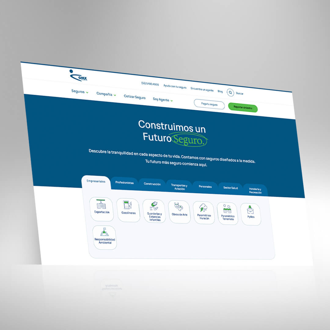 We partnered closely with GMX's technology and marketing teams to redesign their web platform through discovery workshops with stakeholders and brokers to identify key needs and pain points, competitive benchmarking to incorporate best practices from top insurance platforms, user personas and journey mapping to align with real user behaviors across segments, information architecture redesign to streamline navigation and surface high-value content, custom design system aligned with GMX's brand identity for consistency and scalability, and accessibility and compliance validation according to WCAG and national regulations.