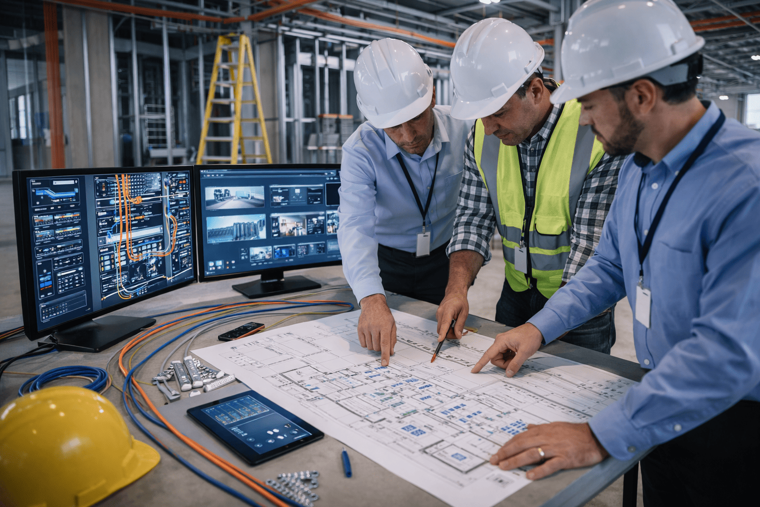 Visual Identity Development: While preserving the original logo as a recognizable anchor, we expanded the brand's visual language with a new color palette, graphic elements inspired by architectural plans and structured cabling, and modern typography that balances technical precision and accessibility. The result is a clean and professional visual style aligned with the 'Smarter Spaces. Better Outcomes.' approach.