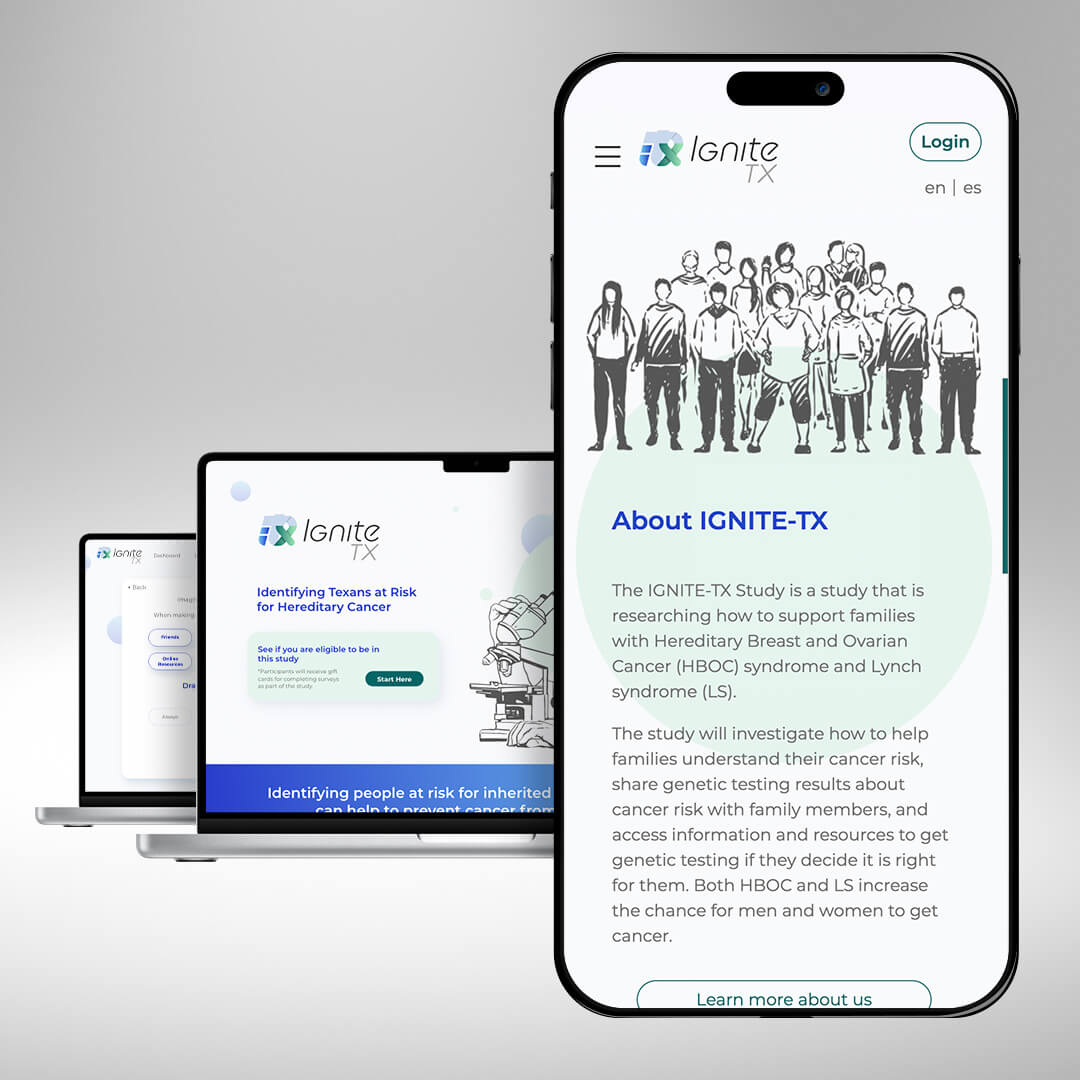 The Ignite TX team needed a modern website to support their mission of expanding access to genetic testing for Hereditary Breast and Ovarian Cancer (HBOC) and Lynch syndrome (LS). The website had to educate a wide range of users, streamline study enrollment, and provide resources for both patients and providers — all while adhering to strict compliance standards.