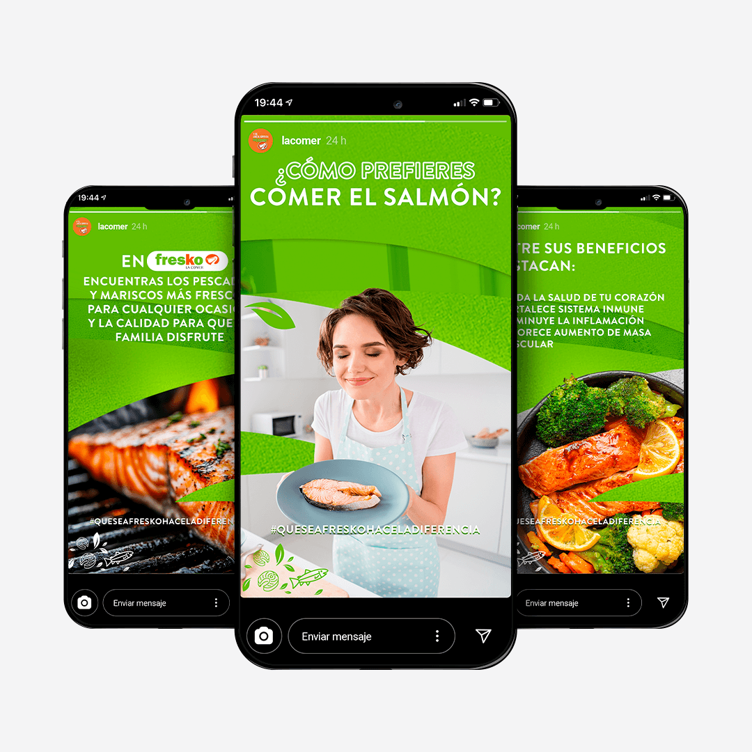 We implemented a digital strategy grounded in original, stock-free content tailored for each social platform. New social media profiles were launched, such as La Comer on Instagram, City Market and Fresko on Facebook, and Fresko on TikTok — all exceeding performance benchmarks. La Comer on Instagram alone surpassed 16K followers and 200K interactions within its first year, while Fresko on TikTok garnered over 17M views in just three months.